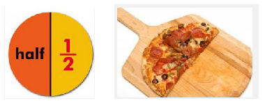 \({\dfrac{1}{2}}\) of a dozen eggs (12 eggs) \(=\) 6 eggs\(~~~~~~~~~~~~~~~~~~\blert{\text{A whole dozen is 12 eggs.}~~~~~~~~~~~~\text{Our part is 6 eggs:} ~~\dfrac{6}{12}}\)