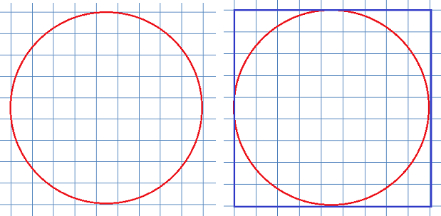 We can estimate the area of a circle by counting the number of squares that fit inside.