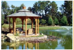 Use your calculator to find that is approximately 150.15 yards. Because the radius of a circle is half its diameter, we divide 150.15 by 2 to find that the radius is 79.58 yards. The distance to the gazebo from the edge of the pond is about 79.6 yards.