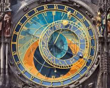 The Prague Astronomical Clock, or Orloj, was built in 1410 and is the oldest clock in the world that still functions. The clock mechanism has three main components: the astronomical dial, representing the position of the Sun and Moon in the sky; an hourly show of moving figures striking the time; and a calendar dial with medallions representing the months.