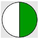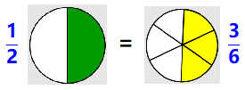 These are not like fractions; their pieces are not the same size. But we can break \(\dfrac{1}{2}\) into smaller pieces, because \(\dfrac{1}{2} = \dfrac{3}{6}\) :