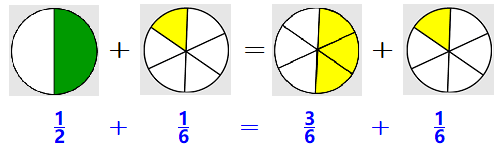 \(\dfrac{1}{2} + \dfrac{1}{3}\)