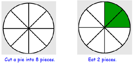 Suppose you cut a pie into 8 slices, and you eat one slice. Then you eat another slice. What fraction of the pie have you eaten?
