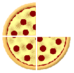 Whoever ate the pizza ate \(\dfrac{1}{2}\) of a whole pizza. In the picture, you can see that \(\dfrac{3}{4}\) of a pizza has 3 equal parts, each of which is \(\dfrac{1}{4}\) of a pizza. So 2 of those equal parts are \(\dfrac{2}{4}\text{,}\) or \(\dfrac{1}{2}\text{,}\) of a whole pizza.