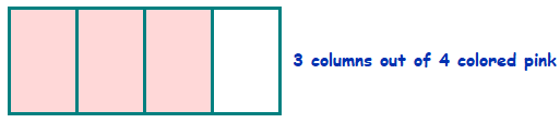 Here is another way to visualize \(\dfrac{2}{3}\) of \(\dfrac{3}{4}\text{.}\) First, draw a rectangle with 4 vertical slices and color 3 of them red to illustrate \(\dfrac{3}{4}\text{,}\) like this: