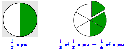 The same is true if we take \(\dfrac{1}{3}\) of a fraction. For example, to take \(\dfrac{1}{3}\) of half a pie, we divide the half pie into 3 pieces.