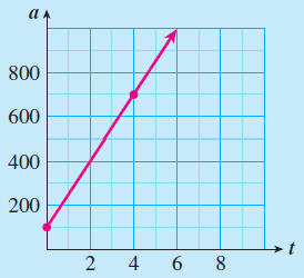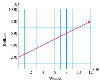 Lynette is saving money for the down payment on a new car. The graph shows the amount \(A\) she has saved \(w\) weeks after the first of the year.