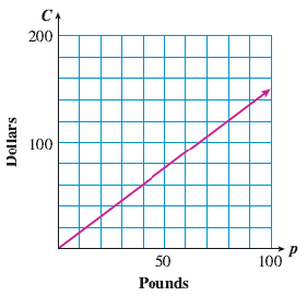 The graph shows the wholesale cost \(C\) of \(p\) pounds of dry-roasted peanuts.