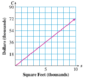 The graph shows the cost \(C\) in thousands of dollars for \(s\) thousand square feet of grass sod for a lawn.