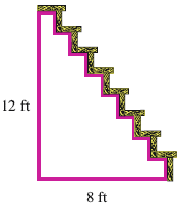 Find the slope of the staircase shown if its height is 12 feet and the horizontal distance between the foot and the head of the staircase is 8 feet.
