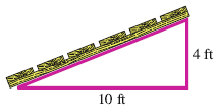 Find the slope of the ramp pictured if its height is 4 feet and the horizontal distance from its base to its top is 10 feet.