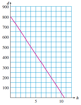 Roy is traveling home by train. The graph shows his distance \(d\) miles from home \(h\) hours after the train started.