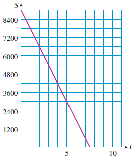Antoine is living off his savings while he goes to college this year. The graph shows the amount of Antoine’s savings, \(S\) dollars, left after \(t\) months.