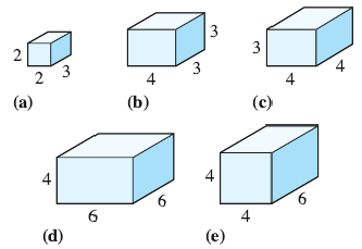 If we scale (multiply) the dimensions of a box by a number \(k\text{,}\) then the volume of the new box is times the volume of the original box.