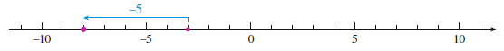 If we use a number line to help us, we begin by plotting the first number, 2. We should then move five units away, but in which direction? Recall that when we add \(-5\text{,}\) we move to the left.