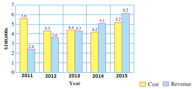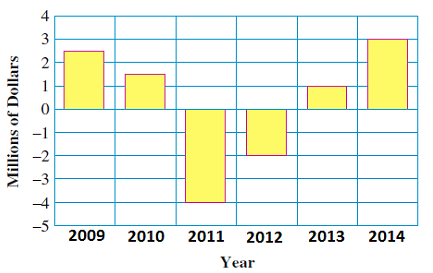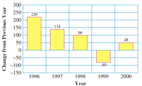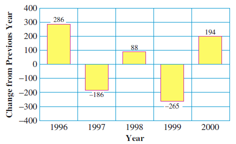 If we know the starting value and the net change in a variable, we can calculate its final value. The bar graph shows the change in annual sales for Solaria.com over six years.