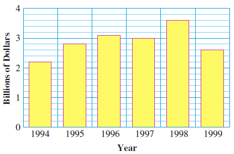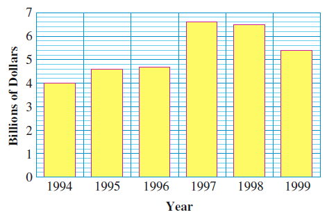 The bar graph shows the value of U.S. exports to Venezuela for the years 1994–1999.