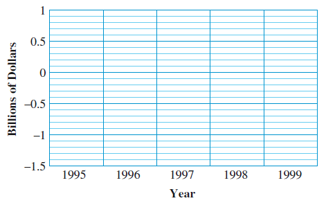 Make a bar graph showing changes in exports on the grid below. Use the table from part (a).